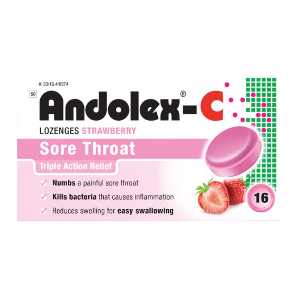 Andolex-C Sore Throat Lozenges -16s - Strawberry