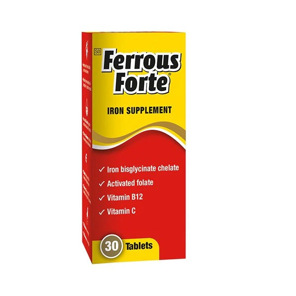 Ferrous Forte Complete Iron Supplement Tablets 30 is ideal for persons suffering from Iron Deficiency Anaemia, Folic Acid or Vitamin B12 deficiency. This complete iron supplement contains a combination of Amino Acid Chelated Iron, Folic Acid, Vitamin B12 and Vitamin C.