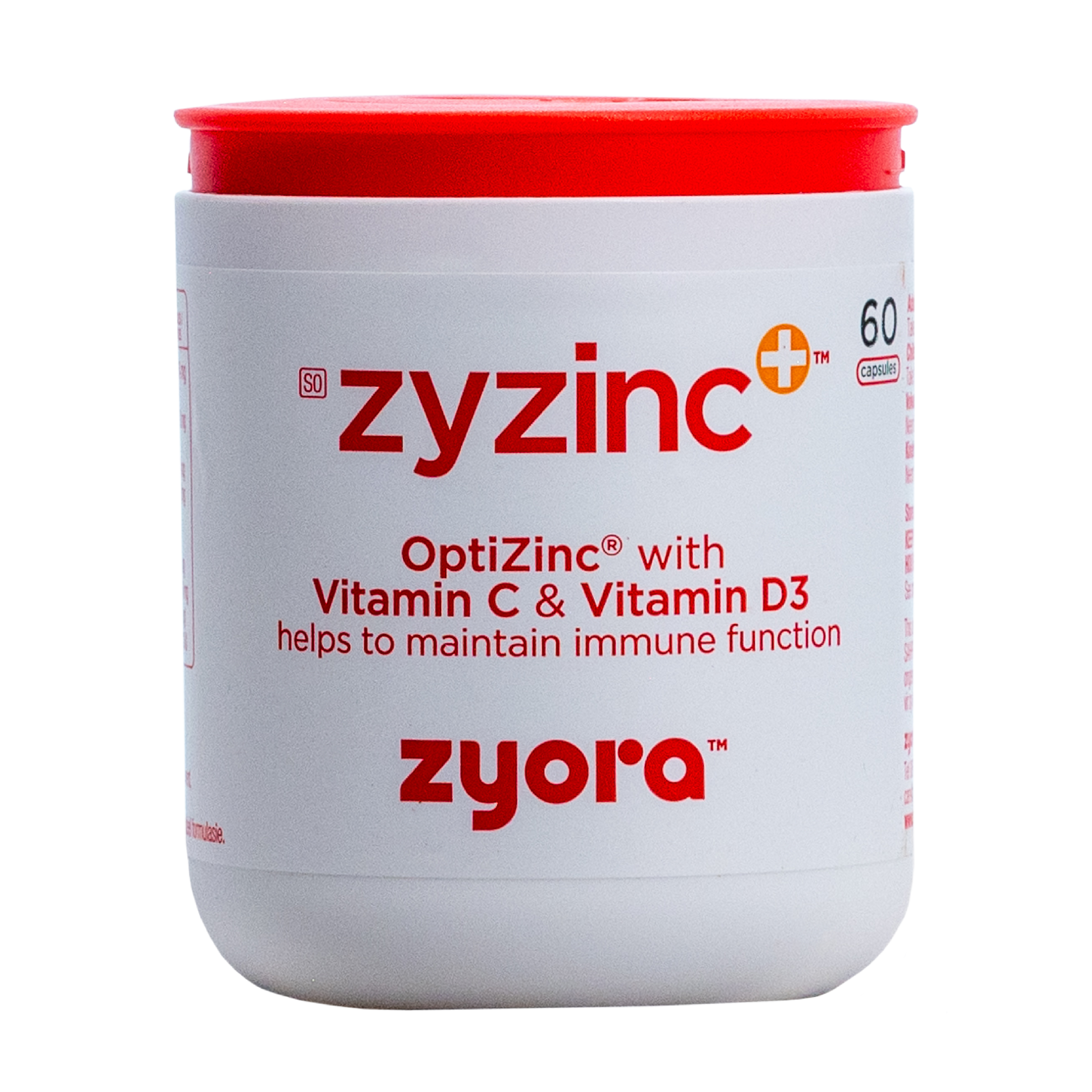 Zyzinc+ is an immune support formula, which has been scientifically designed with Vitamin C, Vitamin D3 and zinc. Zyzinc+ contains the 3 most important immune system modulators in 1 formula: 1. Vitamin C 1000 mg 2. Vitamin D3 1000 IU 3. zinc-methionine complex as OptiZinc 125 mg (25 mg elemental). What makes Zyzinc+ unique is that it contains zinc as OptiZinc , which is a patented chelated zinc-methionine complex clinically proven with superior absorption & retention, Superior antioxidant properties and Superior cellular protection compared to other forms of zinc tested, so it is better utilised and retained by the body. Zyzinc+ also contains high dose Vitamin D3 which modulates the immune response and reduces inflammation. Zinc is critical for antiviral and antibacterial immunity as well as regulation of the inflammatory response Zyzinc+ is packed in 60 capsules and contains Vitamin C 1000mg, Vitamin D3 1000 IU and 25 mg elemental zinc per daily dose (2 capsules for adults). Zyzinc+ 60 s is sugar free, lactose free, vegetarian and suitable for diabetics.